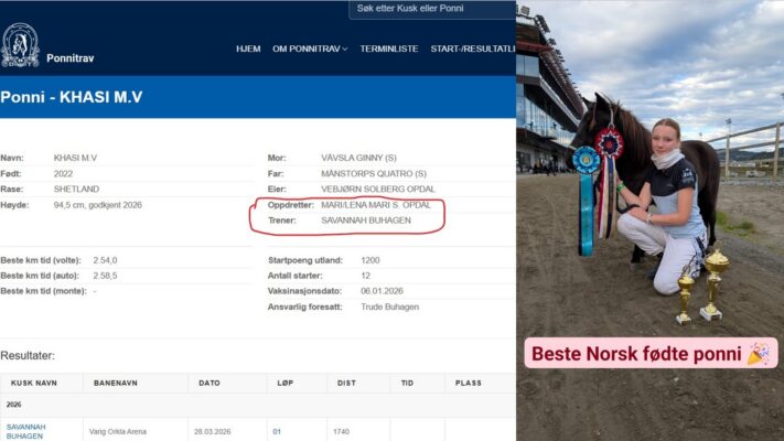 Da har vi hatt en oppgradering på ponnitravet.no. På frontsiden til ponnien ligger nå trener og oppdretter. Vi håper dette kan gjøre det mer spennende for oppdretterne. Vi vil gjerne ha melding om de aktive ponniene som ikke har oppdretter. Vi forsøker å legge dette til i ledige stunder. Dette hentes fra Norsk [...]