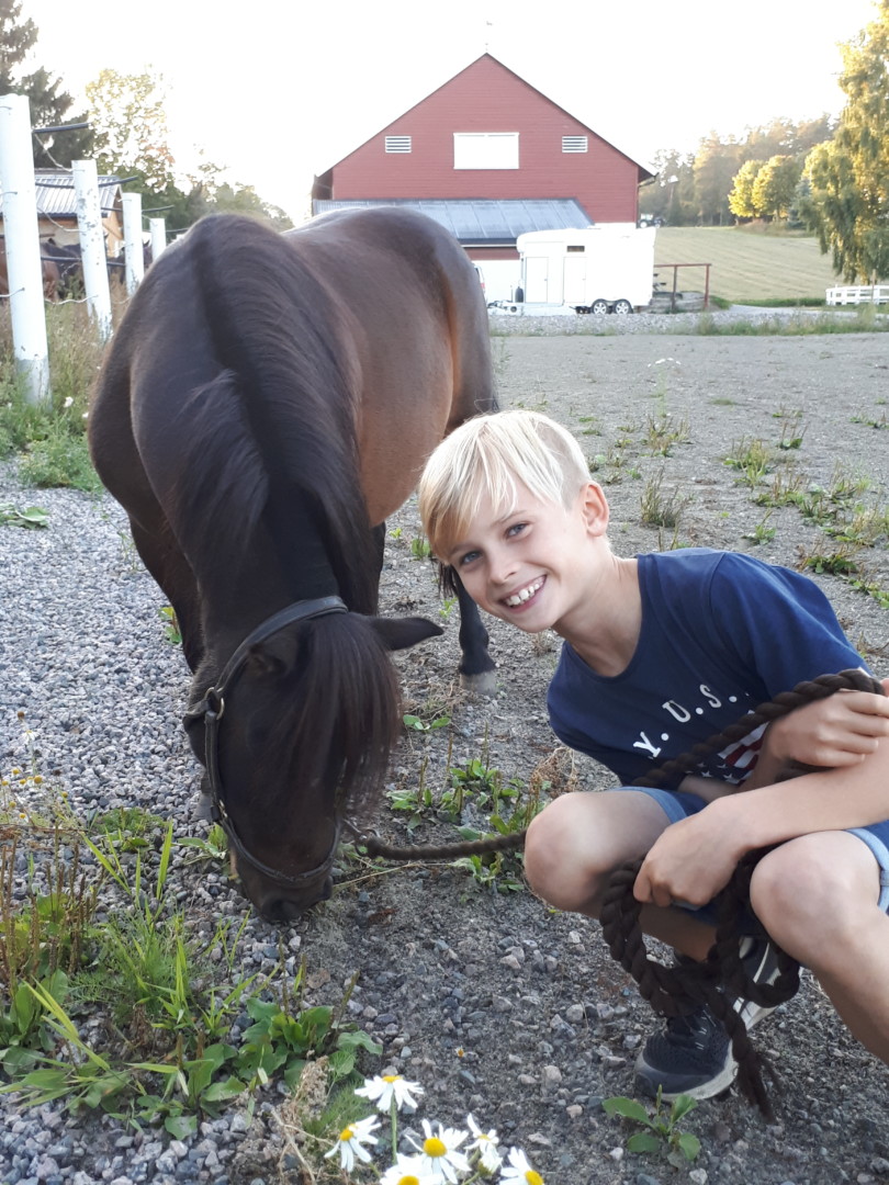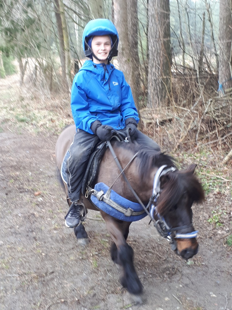 Hva gjør du om dagen? Hatt hjemmeskole. Etter skolearbeidet har det gått mye tid i stallen til trening og kos med ponnien min å de andre hestene. Jeg trener også vanligvis fottball 3 dager i uka. Fotballtreningen har nå forsiktig startet opp igjen med 2 dager i uka. I tillegg rekker jeg litt tid med venner.